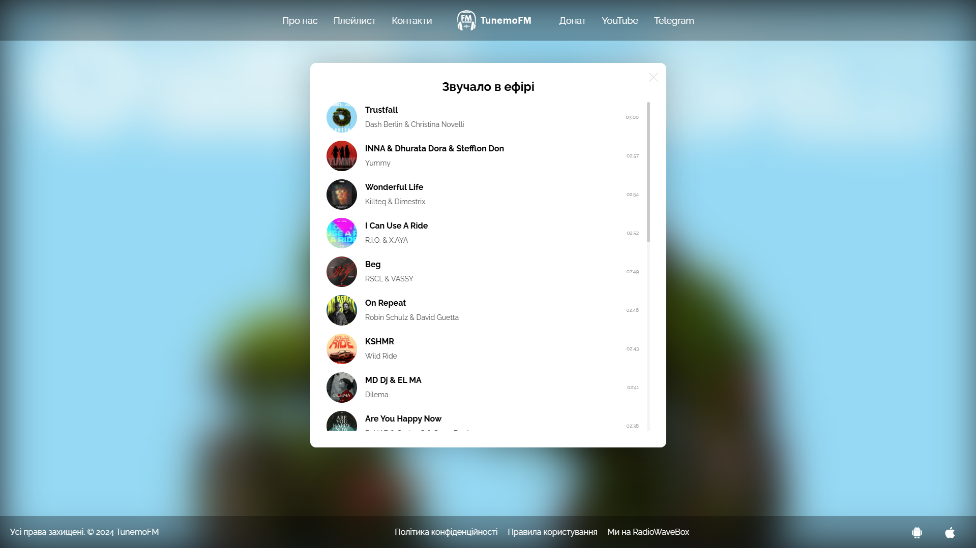 Result: Through comprehensive work on design and animations, the website has become more than just a functional tool; it is now a modern and visually captivating digital space. It successfully unites the audience by providing them with a unique and emotionally rich experience of interacting with the TunemoFM radio broadcast.